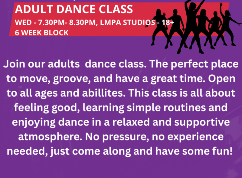 | 07:30 PM - 08:30 PM | Ford Road Studios/Studio 1 Ford Road Studios | Adult Dance Class | ||