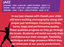 | 04:30 PM - 05:30 PM | Ford Road Studios/Studio 1 Ford Road Studios | Jazz Dance Juniors | ||