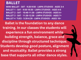 | 09:20 AM - 09:50 AM | Ford Road Studios/Studio 2 Ford Road Studios | Mini Ballet | ||