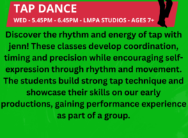 | 05:45 PM - 06:45 PM | Ford Road Studios/Studio 1 Ford Road Studios | Tap Dance | ||
