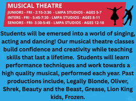 | 03:30 PM - 05:45 PM | Ford Road Studios/Studio 1 Ford Road Studios | Musical Theatre Seniors | ||